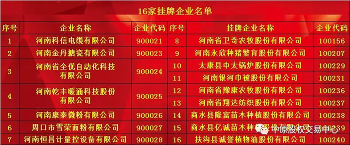 掛牌企業(yè)名單